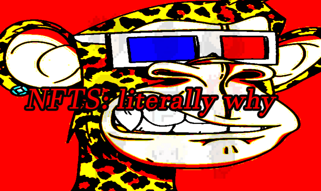 NFTs can basically be summarized as a pyramid scheme with a new name tag. These pieces are sold via cryptocurrency, which is a type of currency that is not physical cash that is accessed by a key code. Cryptocurrency/ Bitcoin Mining is performed using certain hardware that solves an extremely complex computational math problem to perform these transactions. People who do use cryptocurrency get criticized for their depressing financial decisions, and rightfully so. There is a clear risk to their money, futures, and the environment in which bitcoin mining does produce electronic waste. It consumes a huge load of energy per transaction. NFTs are bought, not for the art, but for the investment, and in hopes that those who bought NFTs can sell them for higher prices later. Most people who buy NFTs don’t care about the artistic value of the work but waste thousands of dollars on some random animal from a character customization game from the early 2010s.