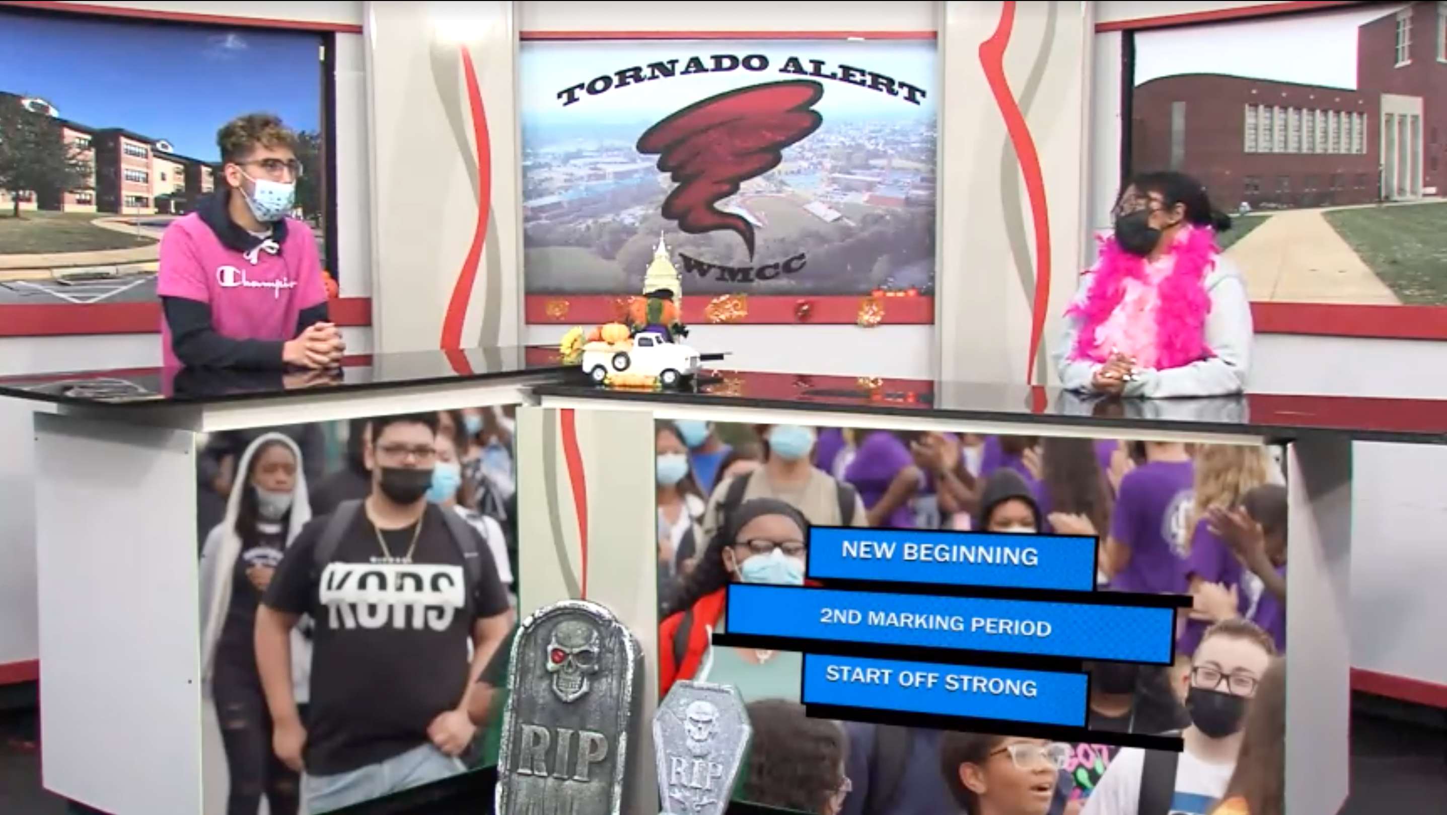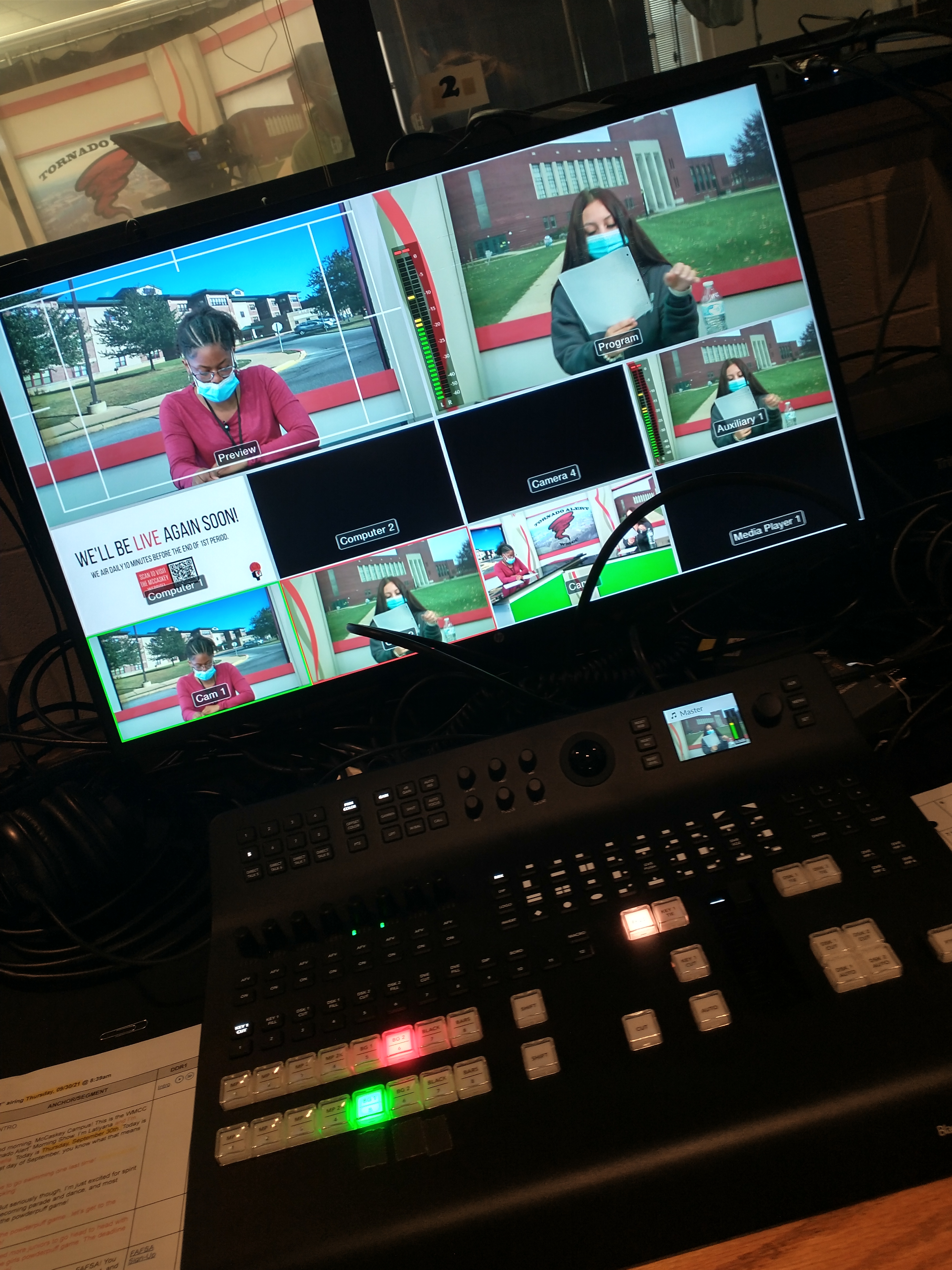 With the 2021 return to in-person instruction came the addition of technological benefits such as the ability to livestream the Tornado Alert. The installation of a new tricaster system allowed for more involved graphics, lower thirds, videos, and other concepts, and because of all the time they had spent on Zoom over the previous school year, WMCC students were, with some encouragement from Ms. Nolt, ready to jump right into the 2021-22 school year with a live show on the first day of school.