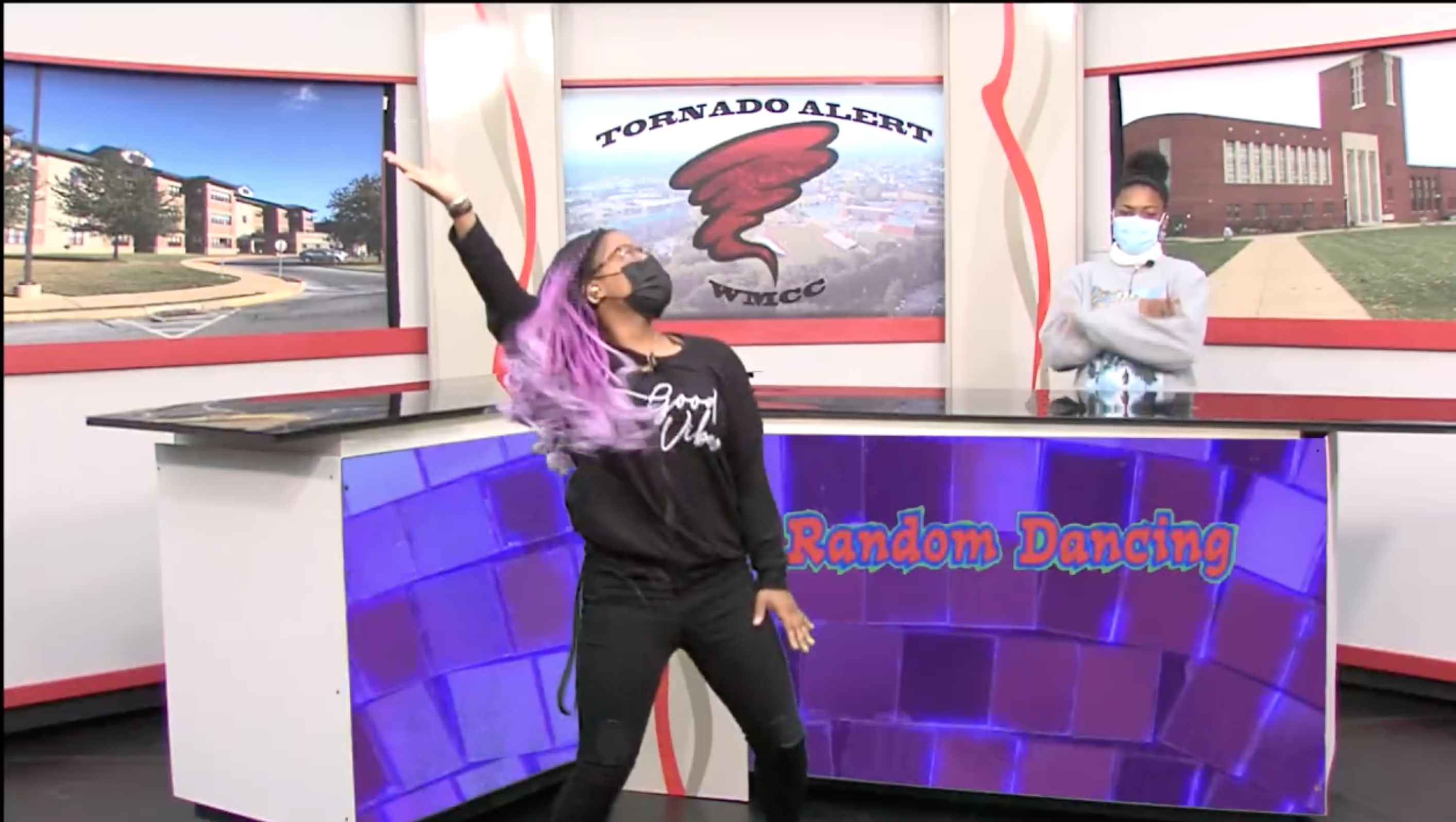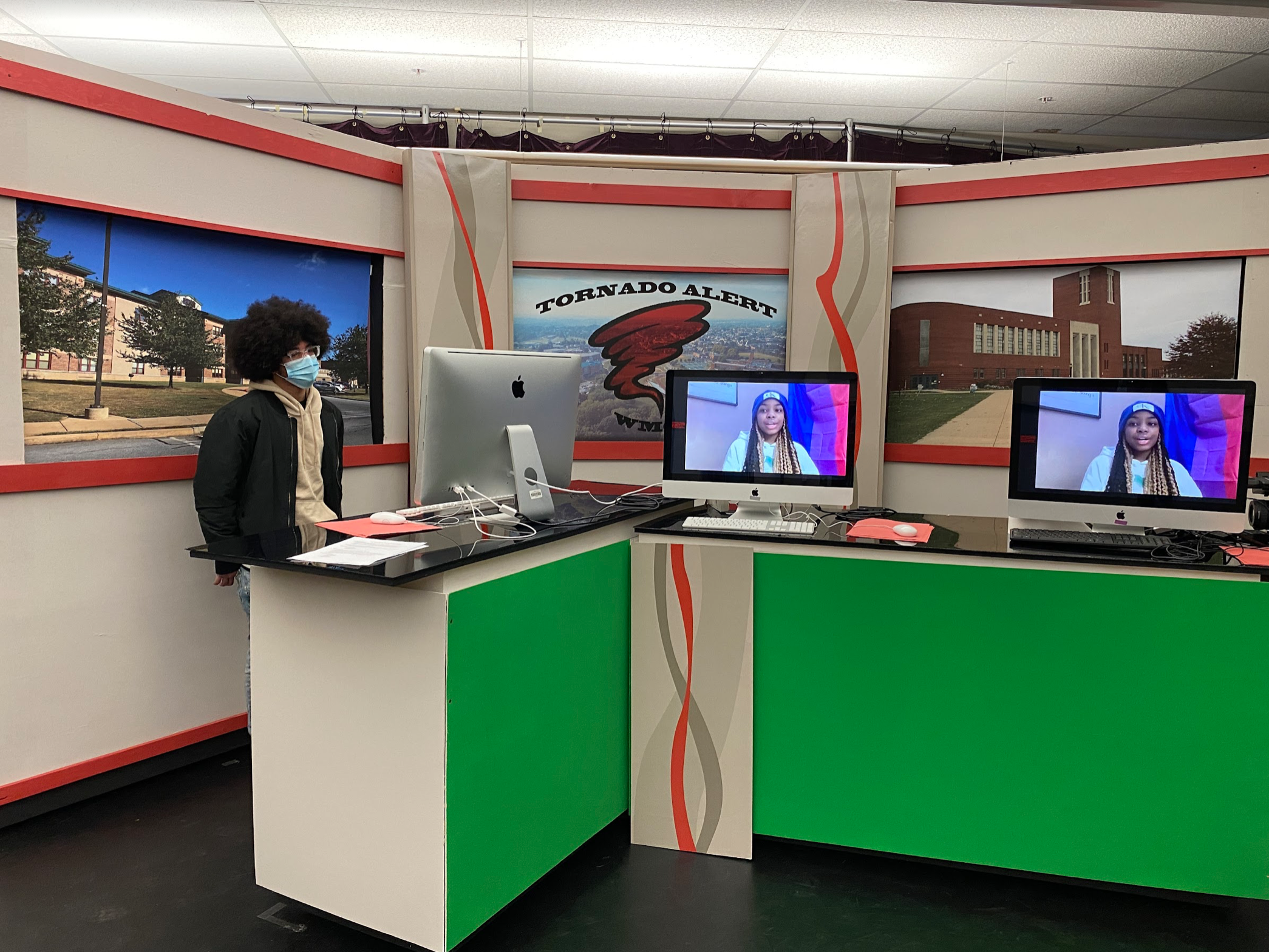 From 7:50 to 8:49 on every full day of school, 20 McCaskey students produce, write, film, edit, and livestream the WMCC Tornado Alert Morning Show, which features everything from campus sports news and information about upcoming events to current events reports and special videos.