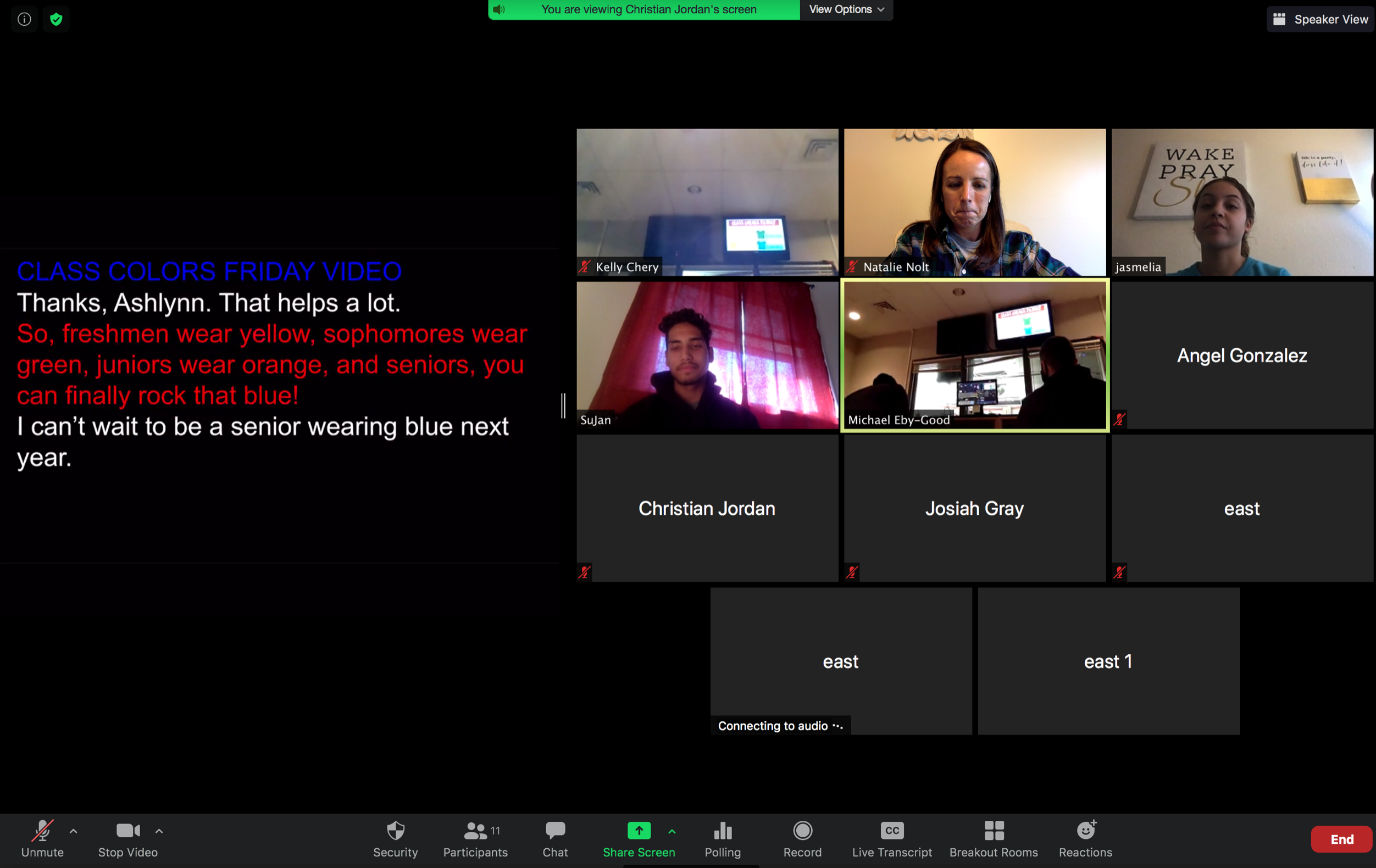 The Morning Show of late 2020 and early 2021 was filmed through zoom and then edited and sent out by Media Studies teacher Natalie Nolt. It was difficult for students, who sometimes had connection issues and also couldn’t perform many of the behind-the-scenes production roles that they were used to. But with the energy and positivity of Ms. Nolt and Ms. Chery (a long-term sub), students were able to keep the show going.