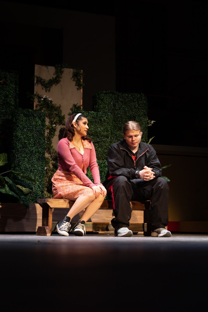 I loved how they incorporated our very own WMCC morning announcements onto the projector by switching out each broadcaster to show our whole morning announcements crew. They even add our iconic “30 seconds to class” followed by the bell. They really made the audience feel like we were actually in the high school performance, in addition to having the performers not just use the stage but the row spaces too. Giving some of the audience props and cues having them engaged in the performance made both the actors and viewers more lively.