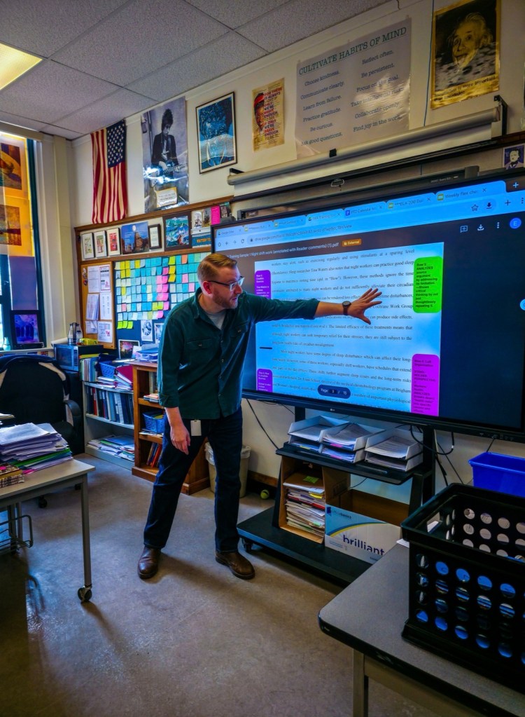 When teaching, it is imperative to find a perfect equilibrium between challenge, support, and engagement. When teachers find this equilibrium, their students become both intelligent and accustomed to challenges. Such traits ready students for the challenges of college. When asked about how he challenges his students, Mr. White stated that “I like to ask students to make those philosophical connections to their own life… I find a good universal way to make connections is that I ask kids to reflect on the fact that we all suffer um every one of us in life who’s living a human life a human story is going to suffer and that binds us all together and we can explore the nature of suffering in a meaningful way and so so challenging students to think on that philosophical level more deeply than maybe they they have before making connections to the literature that we’re reading.” This translates to both of the courses he teaches: 10th-grade English Language and Literature, a course aimed at teaching 10th graders English, and AP Seminar, a course administered by the Advanced Placement program that teaches students to analyze and synthesize ideas.