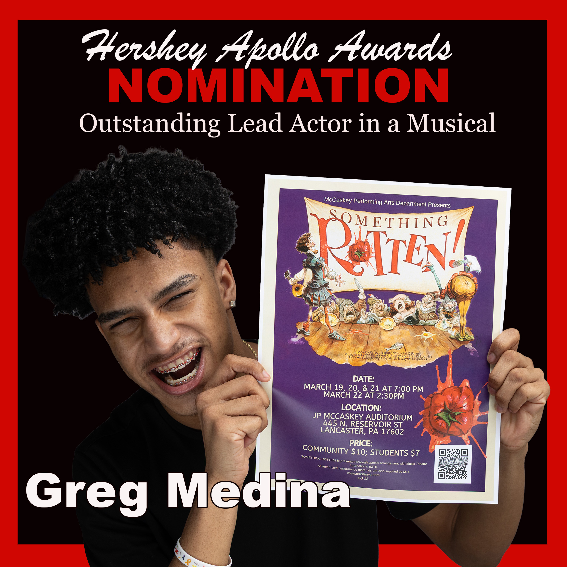 - Outstanding Lead Actor in a Musical — Greg Medina as Nick Bottom in Something Rotten!