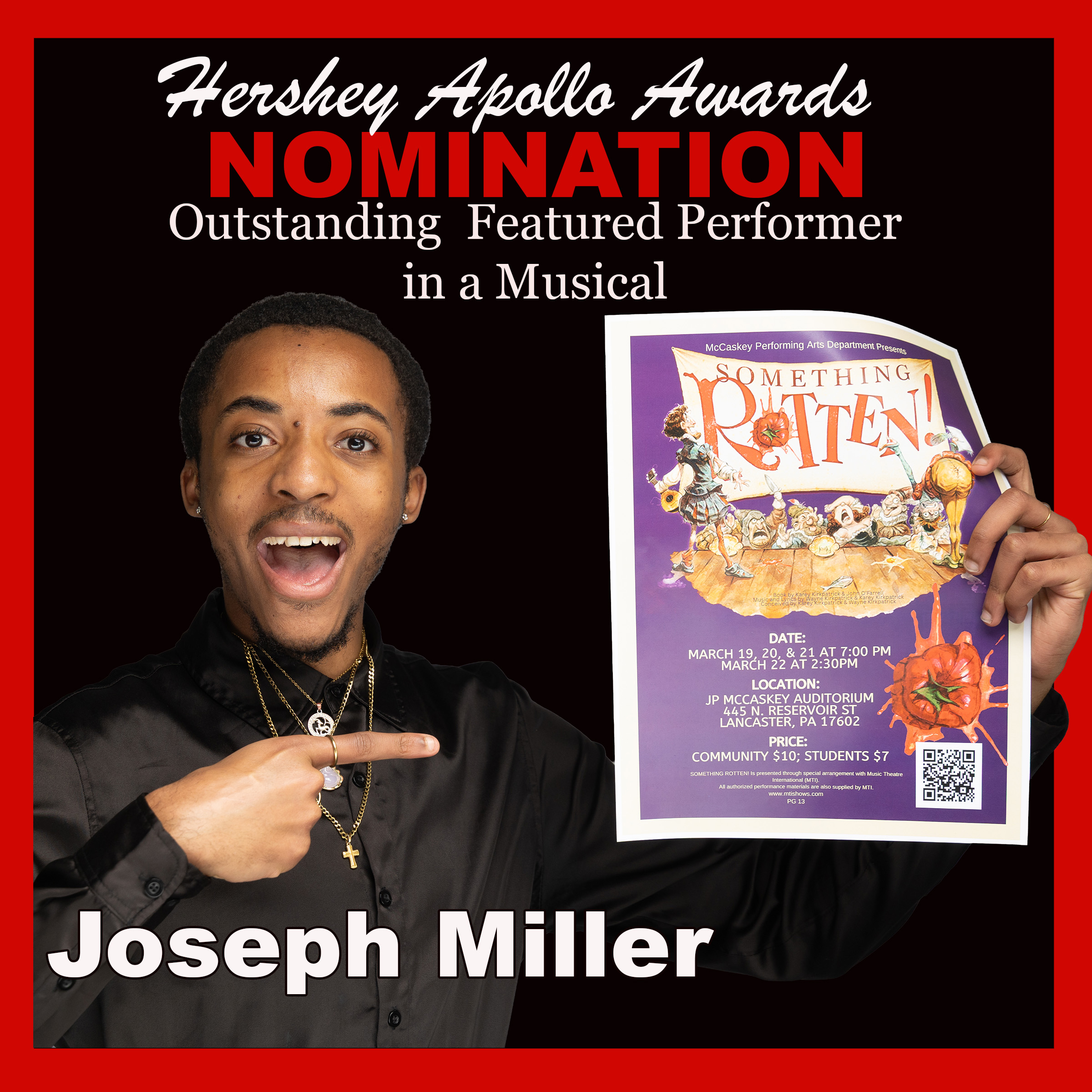 - Outstanding Featured Performer in a Musical — Joseph Miller as Brother Jeremiah in Something Rotten!
