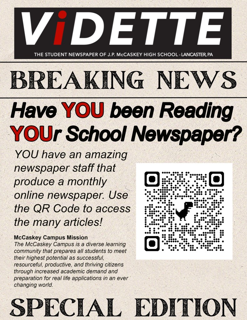 Eleni King Martin, Social Media Manager (11) is in her first year with the Vidette. Eleni has hopes of becoming a journalist, which is why she joined the newspaper staff! She also participates in the Echo yearbook, stage crew, colorguard, and Model UN. Eleni loves how McCaskey brought her to so many of her friends!